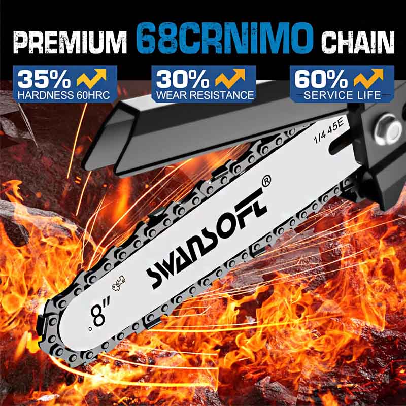اره هرس شارژی جدید SWANSOFT سوآن سافت مدل CS-2 مناسب برای انواع مختلف هرس (از هرس سبک تا هرس سنگین) بوده و با طول ساطوری 200 میلی متر (8 اینچ) و قطر برش 190 میلی متر همراه با دو باتری عرضه می شود. وزن اره بدون باتری 1120 گرم می باشد و در ساخت آن از بهترین مواد استفاده شده تا طول عمر قطعات و بدنه این اره قدرتمند بسیار مطلوب باشد و همچنین اره توان انجام هرس سنگین را نیز داشته باشد. این اره هم چنین دارای سیستم روغن کاری اتوماتیک نیز می باشد.