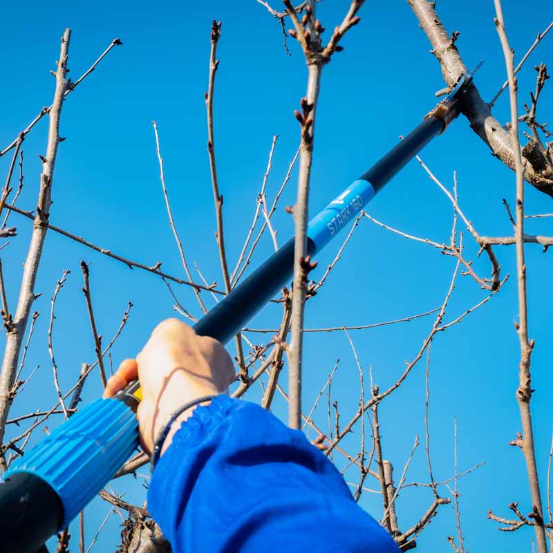 قیچی شارژی هرس بازو بلند ثابت کامپانیولا مدل استارک 90 از خانواده قیچی های شارژی این برند ایتالیایی خوشنام محسوب می شود که دارای بازوی آلومینیومی بسیار با کیفیت است و در سه سایز 90 سانتیمتری، 160 سانتیمتری و 220 سانتیمتری عرضه می شود. دارای دو باتری 21.6 ولتی با ظرفیت 2.5 آمپر ساعت می باشد. وزن این مدل قیچی ها به ترتیب 2315 و 2700 و 3115 گرم و قطر برش آن ها 38 میلیمتر است. شما با هر باتری به طور میانگین می توانید 4 تا 6 ساعت هرس نمایید.