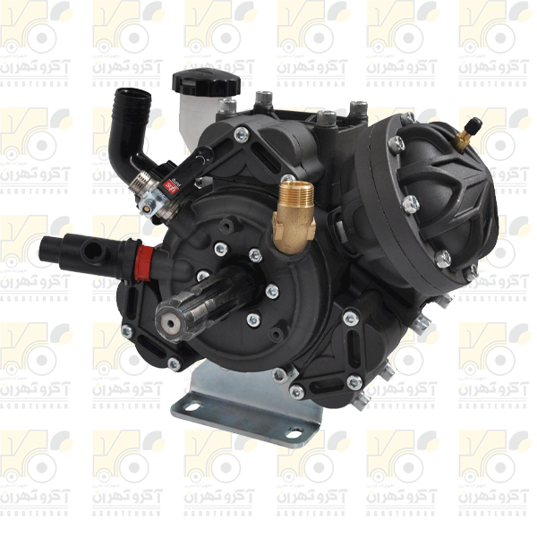 این پمپ دارای سه محفظه دیافراگم است که توسط یک شافت، که توسط گاردان به PTO تراکتور وصل میشود، حرکت مییابد. این حرکت باعث جابجایی پیستون و دیافراگم میشود.
