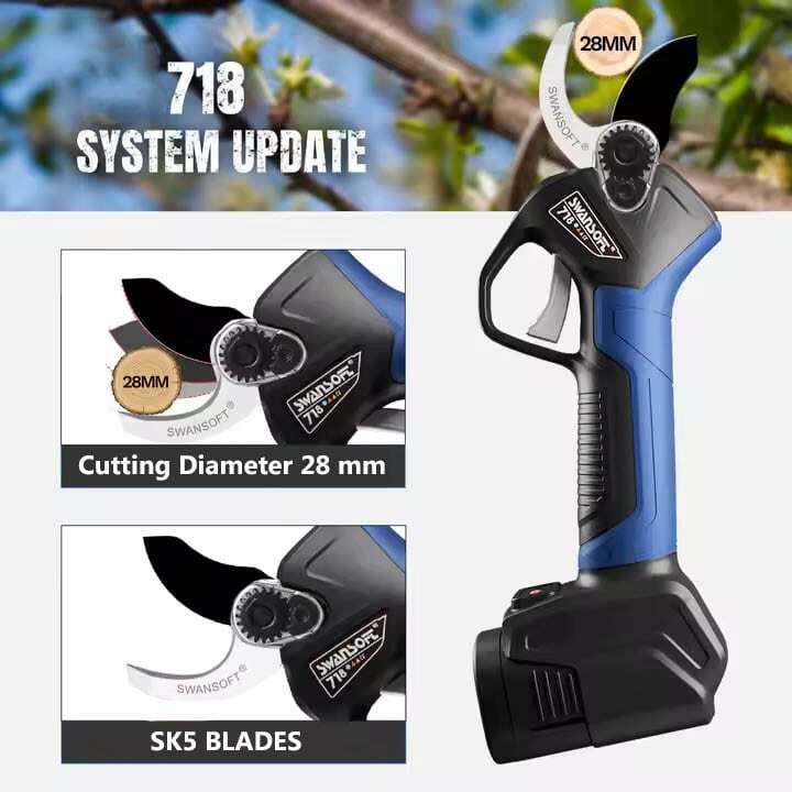 قیچی هرس شارژی جدید SWANSOFT سوآن سافت مدل 718 از یک موتور بدون جاروبک قدرتمند 850 واتی قدرتمند بهره می برد که نیروی لازم را برای برش شاخه هایی تا قطر 28 میلی متر فراهم می کند. موتور الکتریکی به کار رفته در این قیچی شارژی از نوع بدون جاروبک (BRUSHLESS) می باشد که در استفاده از نیروی ذخیره شده در باتری بسیار بهینه عمل می کند و طول عمر بیشتری نسبت به موتورهای الکتریکی معمولی دارد.