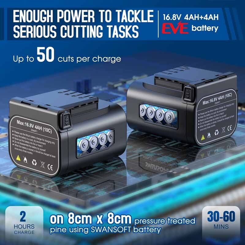 اره هرس شارژی جدید SWANSOFT سوآن سافت مدل CS-1 با ساطوری 150 میلی متری دارای حداکثر قطر برش 135 میلی متر می باشد. سرعت برش این اره زنجیری شارژی 8 متر بر ثانیه است که سرعت برش مناسبی محسوب می شود. زنجیر برش استفاده شده برای این اره کیفیت بسیار بالایی دارد. این اره دارای سیستم روغن کاری اتوماتیک است. برای روغن کاری زنجیر کافی است که قبل از شروع به کار مخزن روغن را از روغن مناسب پر کنید.