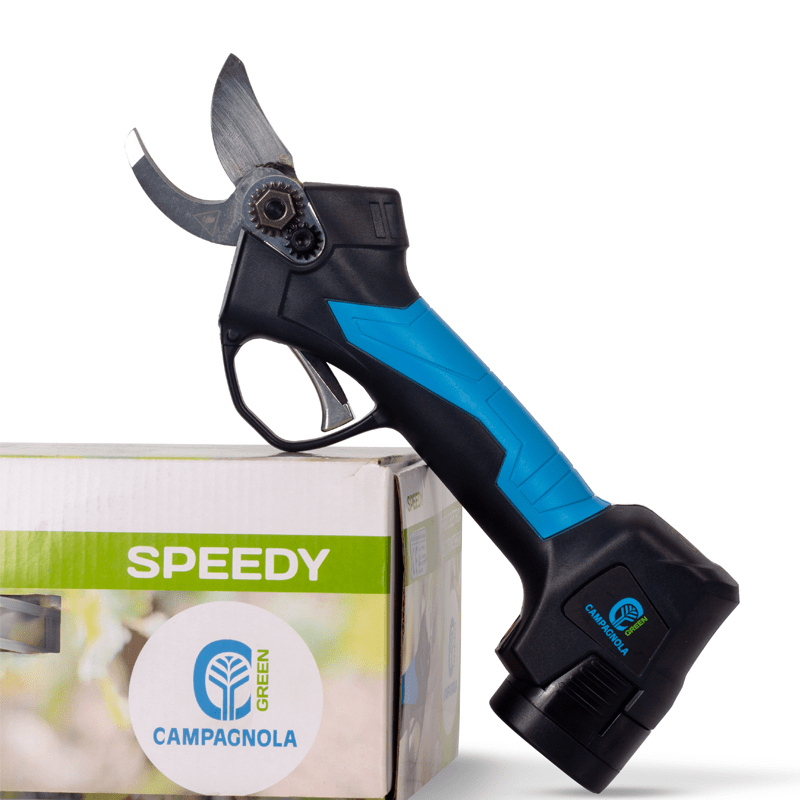قیچی شارژی باغبانی ایتالیایی کامپانیولا مدل اسپیدی کوچکترین مدل قیچی های شارژی از محصولات شرکت مذکور بوده و با وزن 890 گرم همرا با باتری دارای آرگونومی بسیار مناسب و قدرت مانور بسیار بالا بوده که آن را مناسب هرس درختانی می کند که نیاز به هرس شدید با سرعت بالا دارند. مانند درختان انگور و کیوی و یا سرشاخه های درختان.